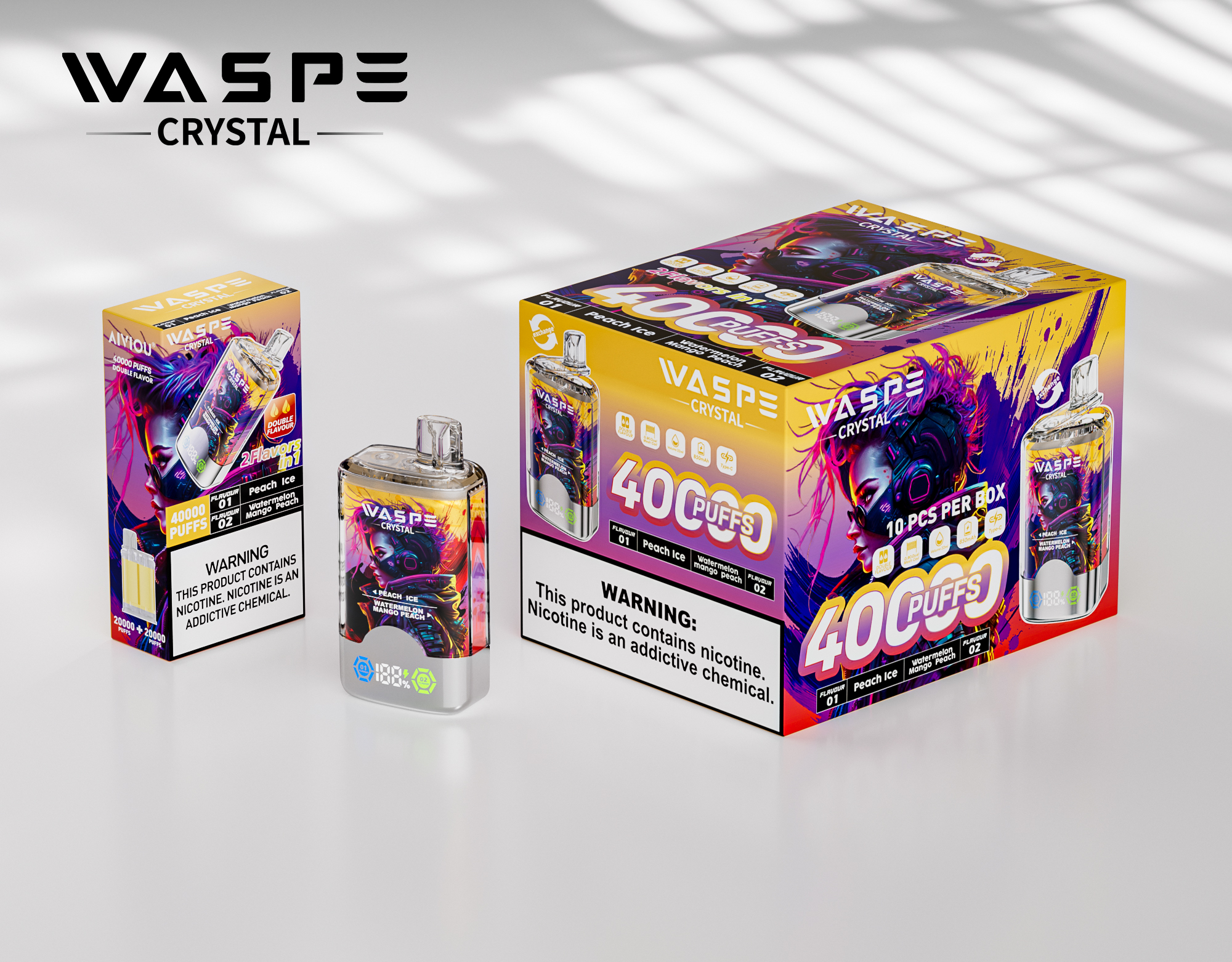 A WASPE Crystal 40K az erős felhasználóknak, ízkeresőknek, vape boltoknak és forgalmazóknak készült. A tömeges puffadásszám, az újratölthető kialakítás és az ízekben gazdag kombói miatt a legjobb választás a B2B értékesítési és kiskereskedelmi polcokon Európában és azon túl.