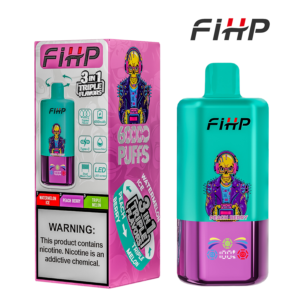 Il FIHP 60000 Triple 3-in-1 è progettato per gli utenti che richiedono varietà e prestazioni. Con il suo sistema a triplo sapore, il lungo numero di boccate e le funzionalità intelligenti, è l’ideale per i consumatori abituali e gli amanti dei sapori. I negozi e i distributori di vaporizzatori apprezzeranno la sua confezione pronta all’uso e l’elevato appeal del cliente. 🚀💨