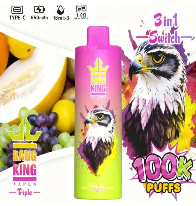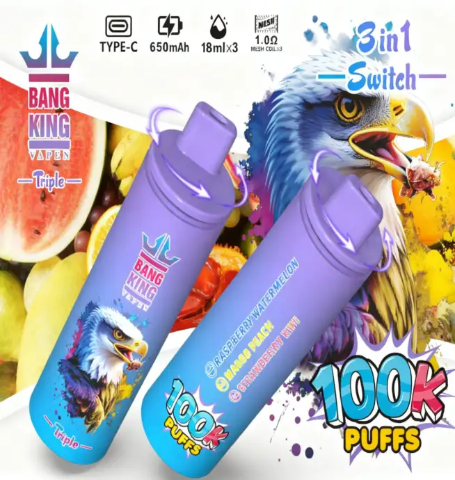 Bang King Triple 100.000 wegwerpvapes levert kracht, smaakvariatie en premiumkwaliteit in één apparaat 🚀 Een slimme keuze voor moderne vapers en professionele vape-bedrijven.