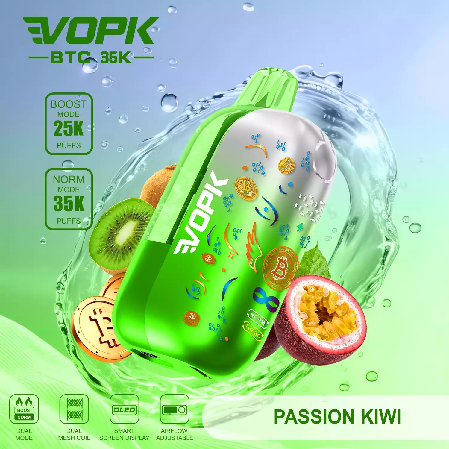 VOPK BTC 35000 wegwerpvape is ontworpen voor gebruikers die kracht, stijl en controle willen in één geavanceerd apparaat. Dit oplaadbare wegwerpartikel is geïnspireerd op een gedurfd ontwerp in Bitcoin-stijl en beschikt over een groot interactief scherm, een dubbel mesh-spoelsysteem en een instelbare luchtstroom. Het is gebouwd voor zowel zware gebruikers als professionele vape-distributeurs en levert een consistente smaak, enorme wolken en een uitstekende aantrekkingskracht op de schappen voor de detailhandel.