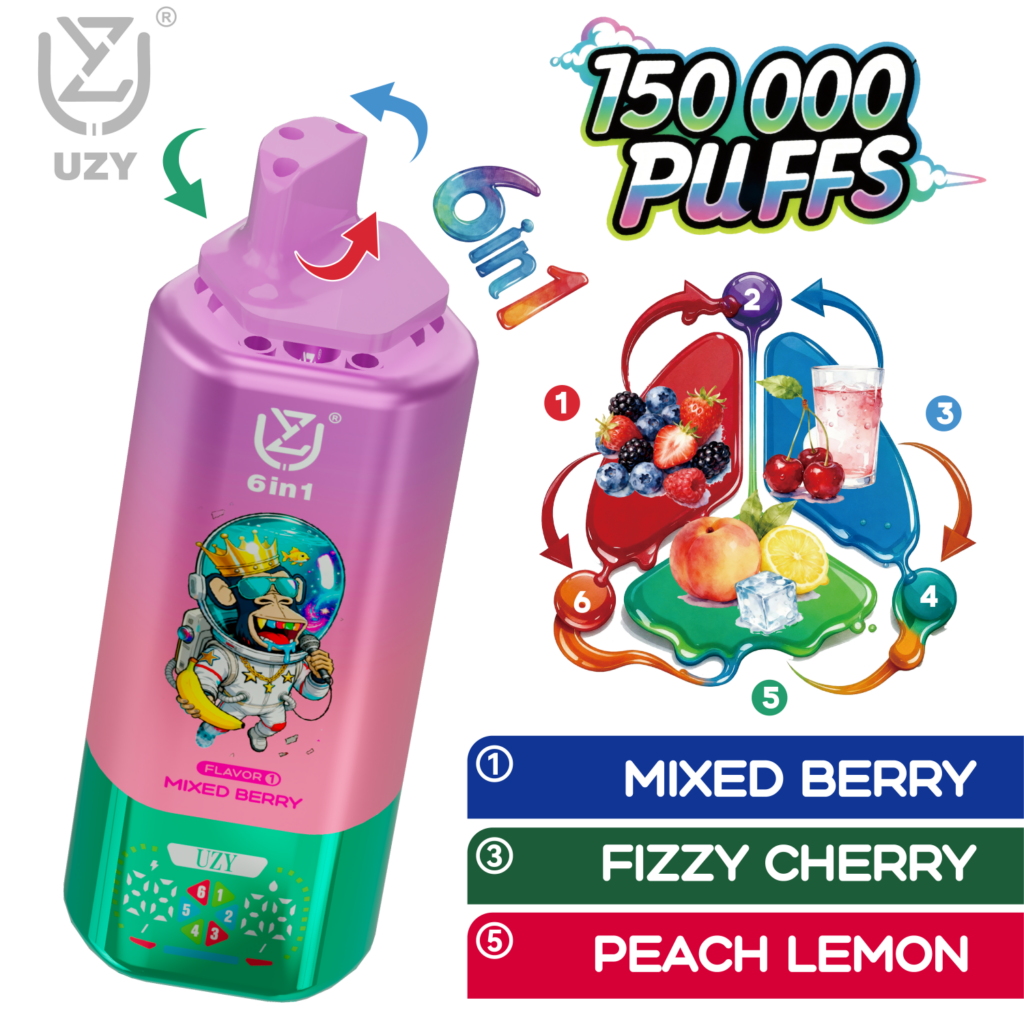 € 14.65UZY 6-in-1 150K | six-flavor 150,000 puffs 64ml disposable vape with smart screen & quad mesh coil