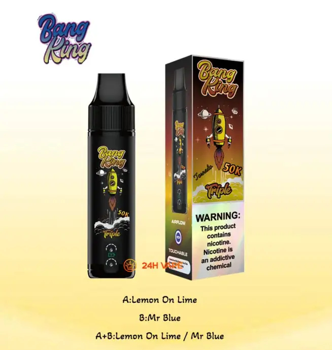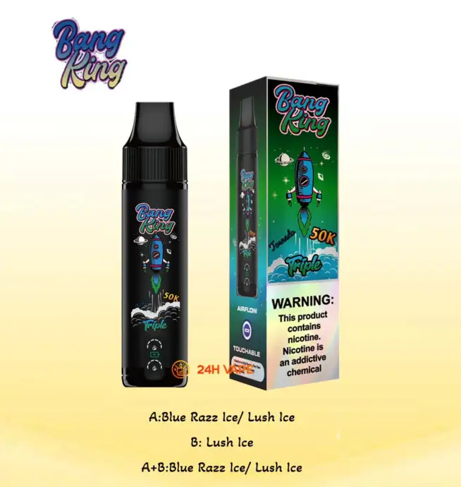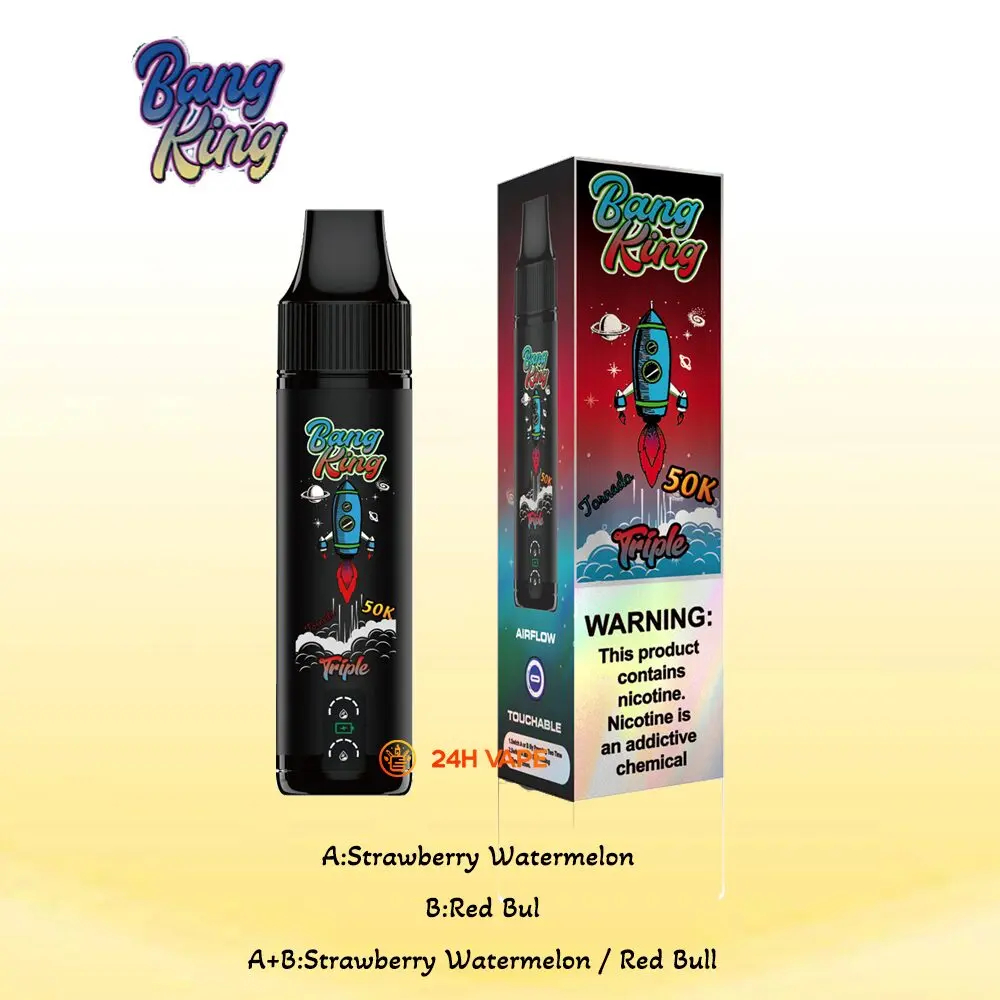 Bang King Triple 50K puffs disposable vape is a top-tier choice for users who demand durability, flavor variety, and smart design. Whether you are a personal user looking for a long-lasting vape or a vape shop sourcing reliable wholesale products, this device delivers strong performance and excellent value. πŸ’Ž