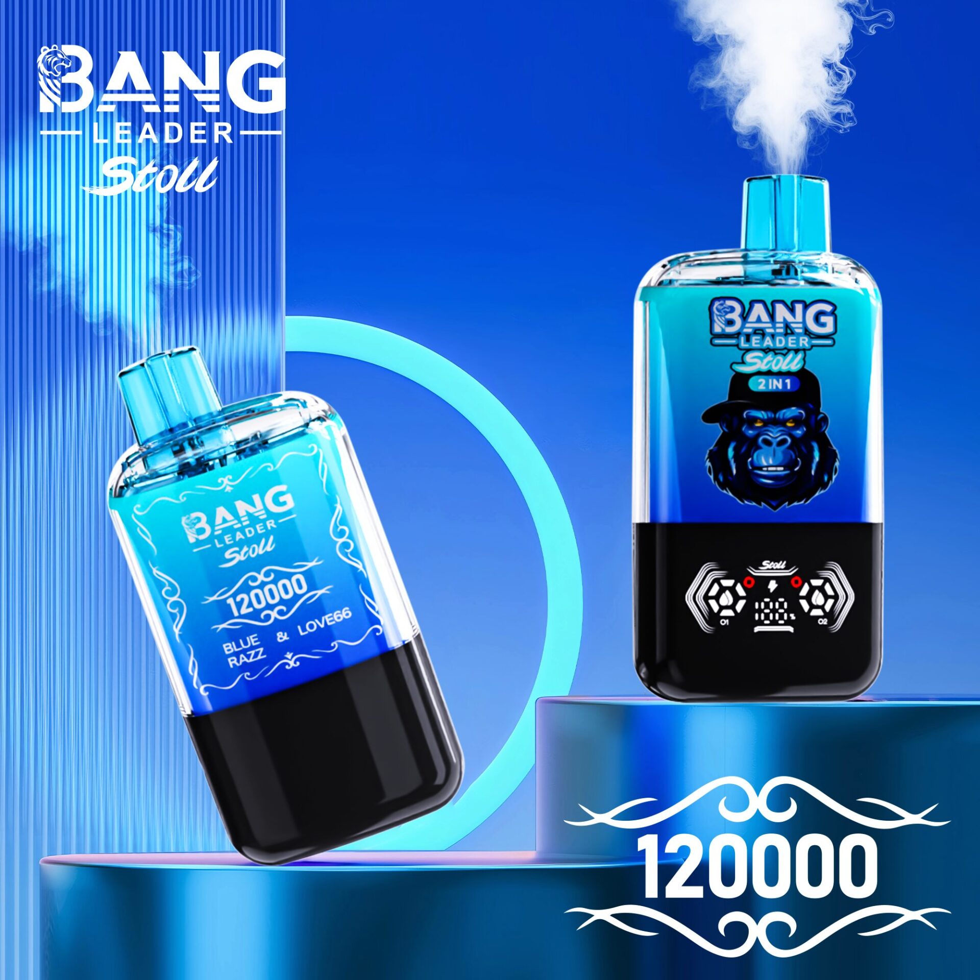 Bang Leader 120K 2-in-1 disposable vape with 120,000 puffs, smooth dual-flavor switching, and rich clouds. Ideal for B2B distributors, vape shops, and bulk orders.