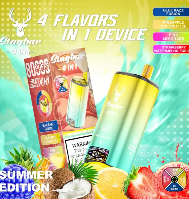 Stag Bar 4in1 80000 Puffs is the perfect choice for heavy users, flavor chasers, and retailers looking for a high-performance, long-lasting vape. With 4 flavors in one device, a powerful battery, and smart LCD monitoring, it offers unbeatable convenience and value for both personal and wholesale use. 💥